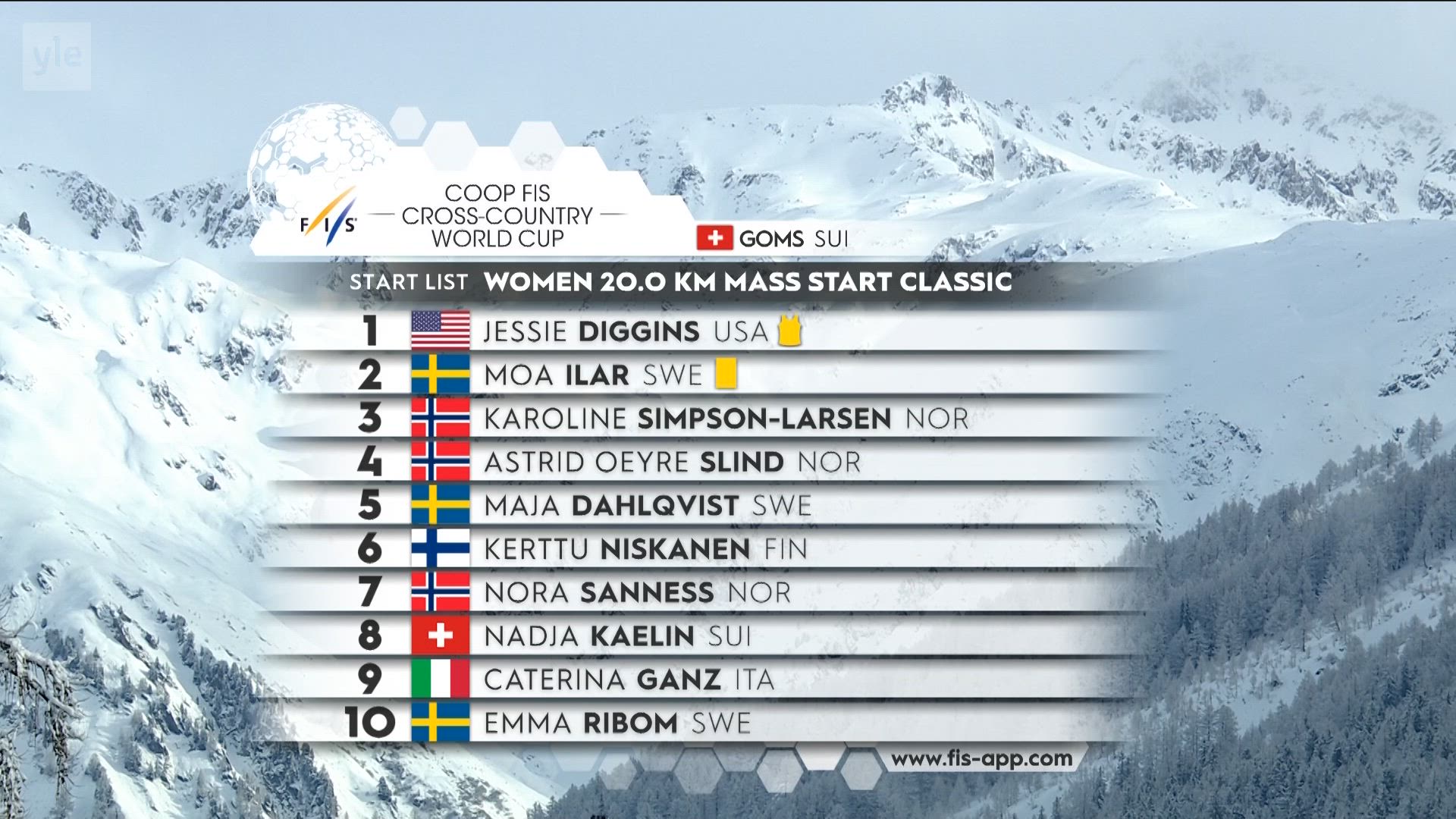 "title": "Naisten 20 km yhteislähtö, Goms",